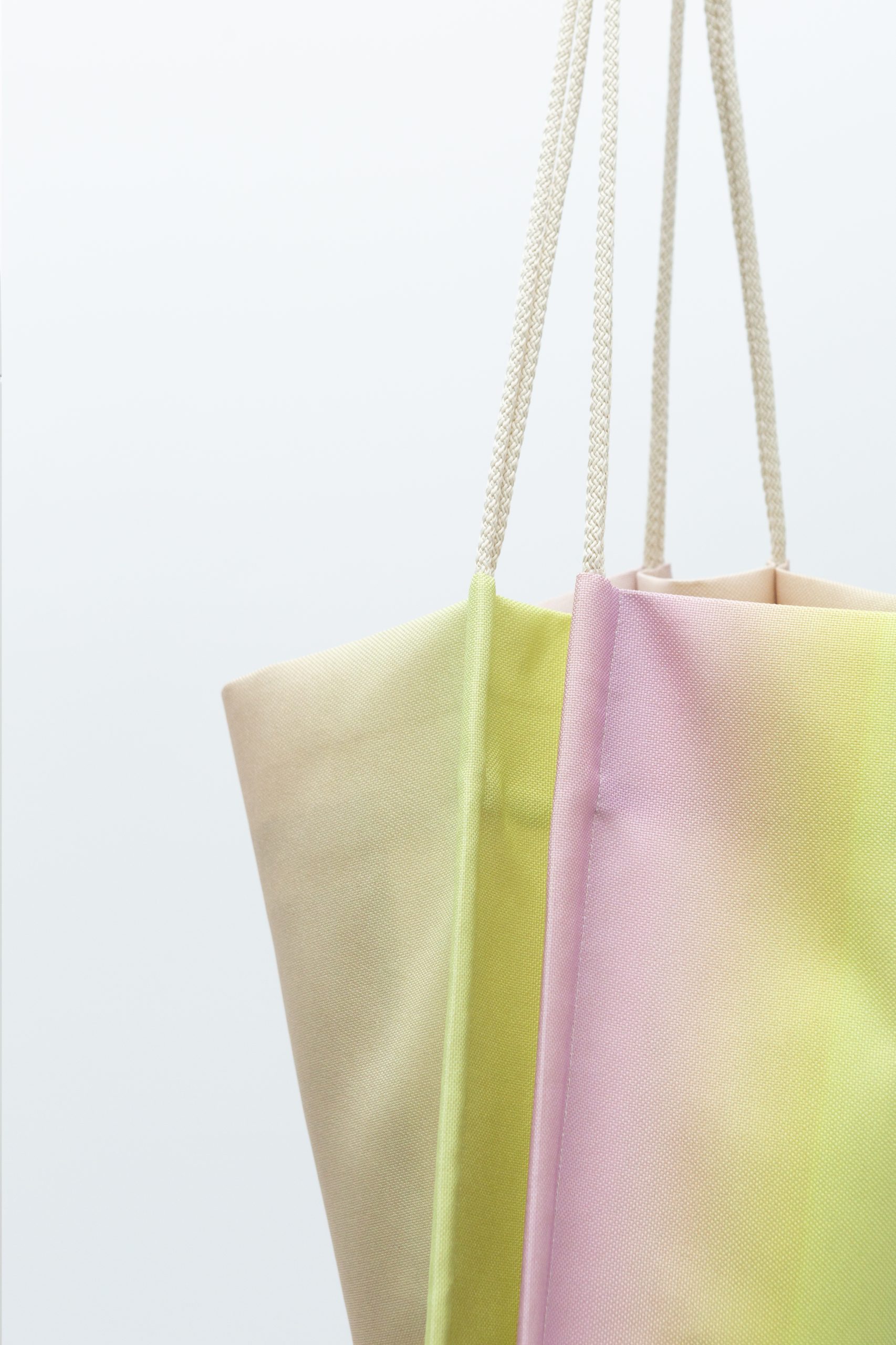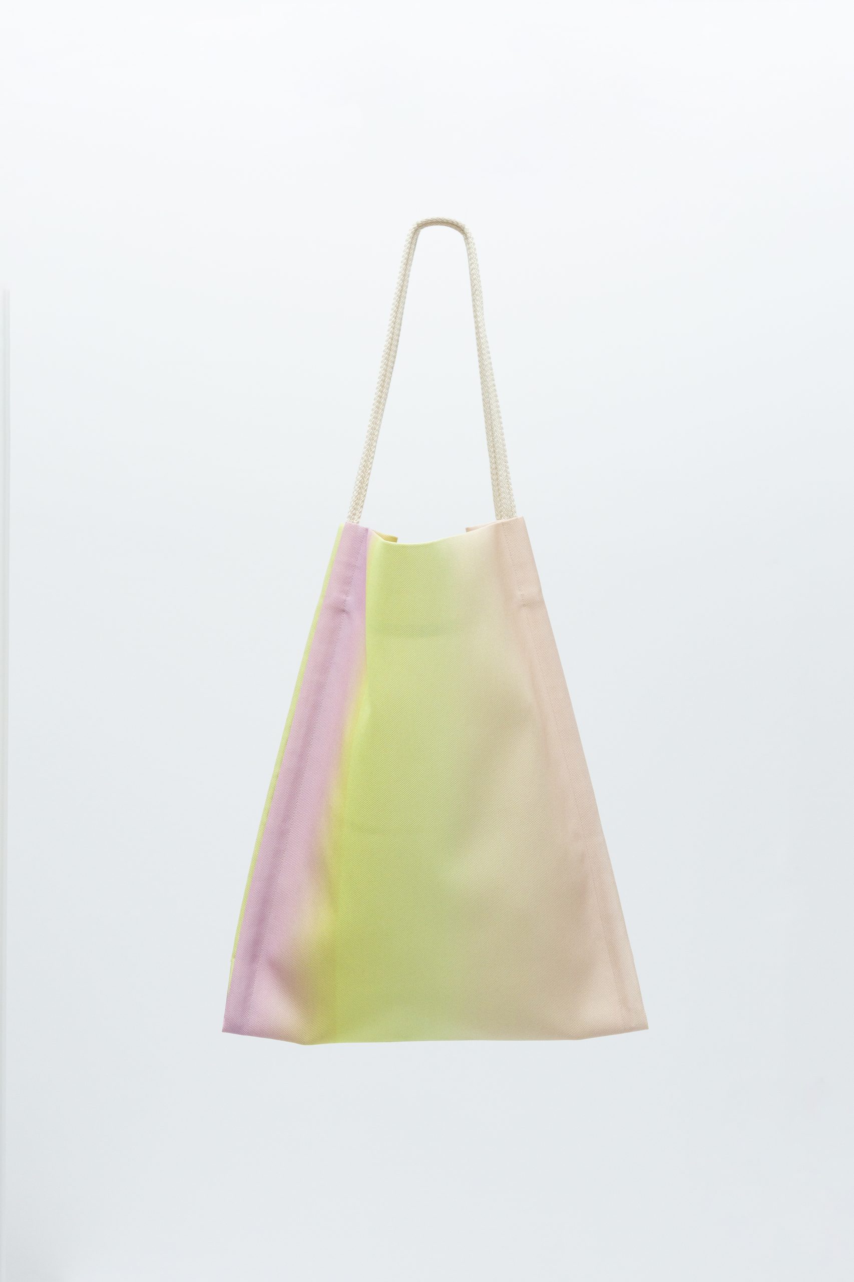 Tote bag inspired by the soft colours of summer. Water repellent bag with zipper fastening, one inner pocket.